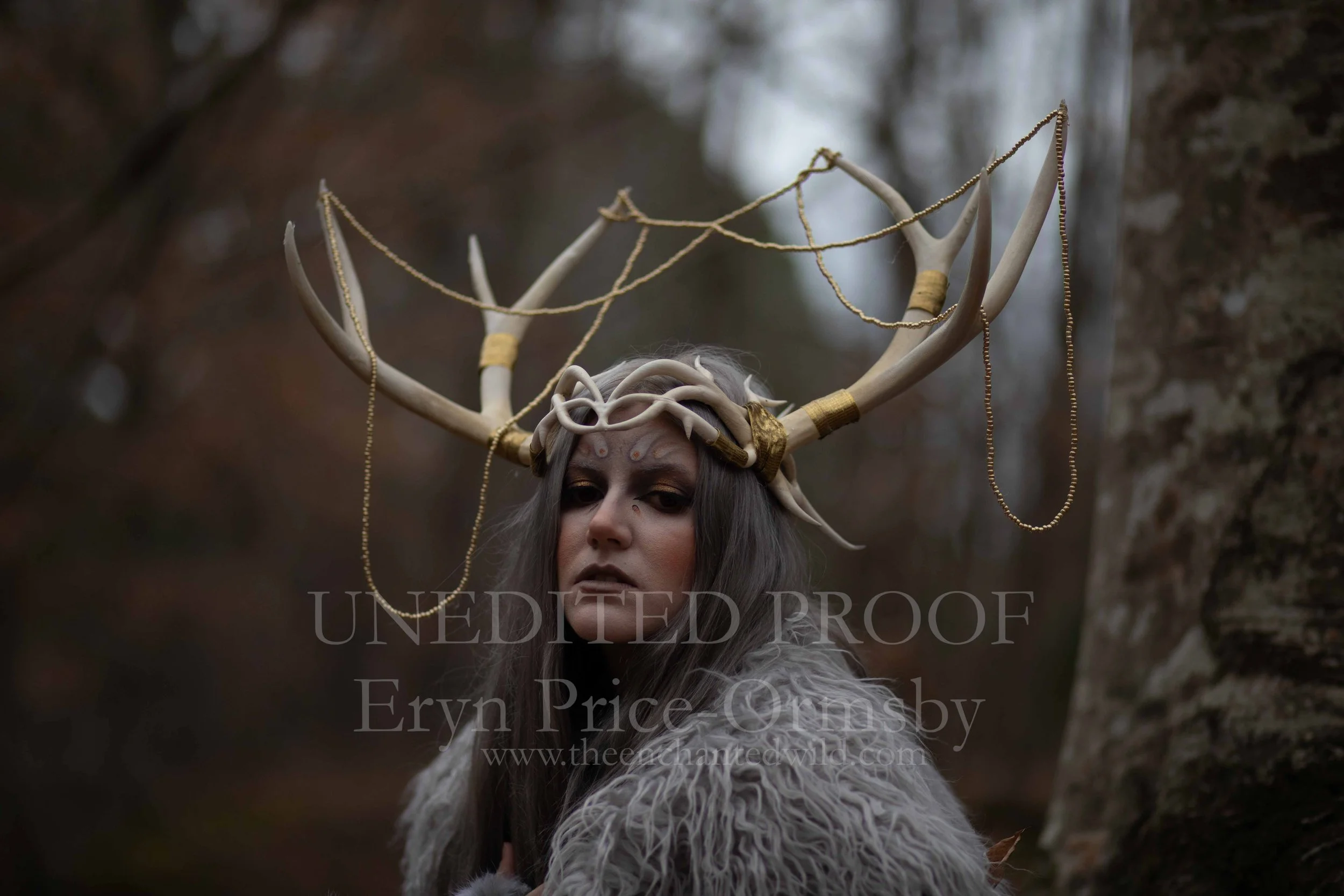 Copper halo Crown adorned with luna moths in pearl iridescence